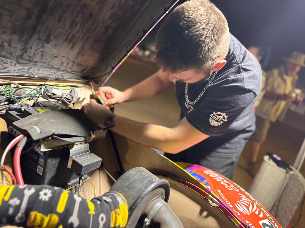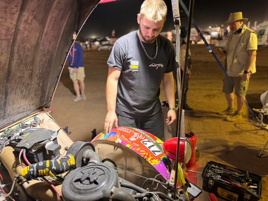 Náročnost se začíná zapisovat i pod nehty mechaniků. Mechanici měli jen tříhodinový spánek a začíná se projevovat únava. Mechanici si na Citroënu 2 CV odškrtli první noční směnu této rally. Student Jan Pavlík o jeho první náročné noční „službě“: „Nečekal jsem, že po první etapě budeme mít noční. I přesto, že jsme naspali jen tři hodiny, jsme s Tomášem Nerudou odhodlaní bojovat dál! Ale nebudu lhát, ráno se mi opravdu nechtělo vstávat, a to ještě když vím, že nás čeká ještě další nálož kilometrů v doprovodném autě cestami necestami neznámým terénem.“