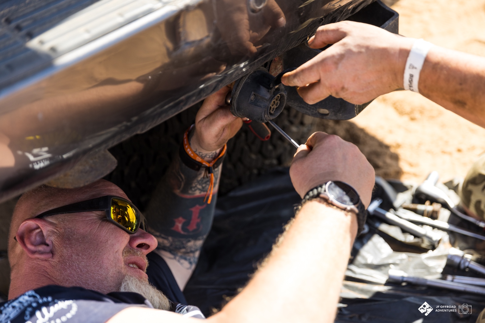 Mechanici si chodí lehnout jako poslední, vstávají jako první. A to už v prvním XXL bivaku v BISHE. Špinavé ruce, široký úsměv, nějaký ten vtípek. Jsou to odborníci ve svém oboru, ale co je hlavní umí perfektně improvizovat. Správně, takoví jsou naši kluci samuraiský na Dakaru!